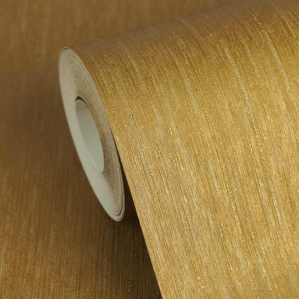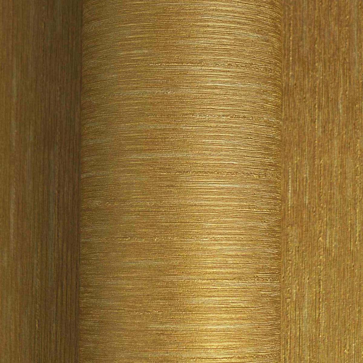 Versace Premium woven fabric wallpaper delivers a rich Gold metallic glossy look with a rib-like woven shimmer. The non-woven backing supports a clean, stylish finish for modern interiors. Slightly textured and subtly reflective, it elevates living spaces.
