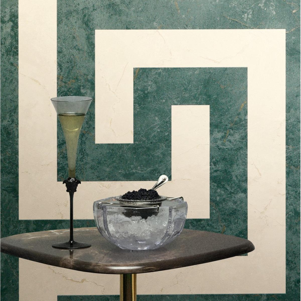 Crafted from high-quality non-woven vinyl, this luxury wallpaper ensures durability and easy installation. The wallpaper’s slightly textured surface with a partially glossy finish amplifies the depth of the design, creating an immersive visual experience. The combination of the Greek Key motif and the harmonious green and cream color palette evokes timeless elegance and luxury. The Versace Greek Key design wall paper is the perfect addition to any high-end space, from luxury homes to upscale boutique hotels.