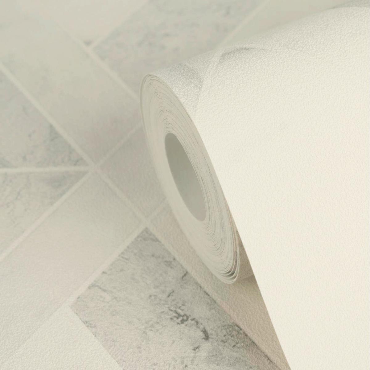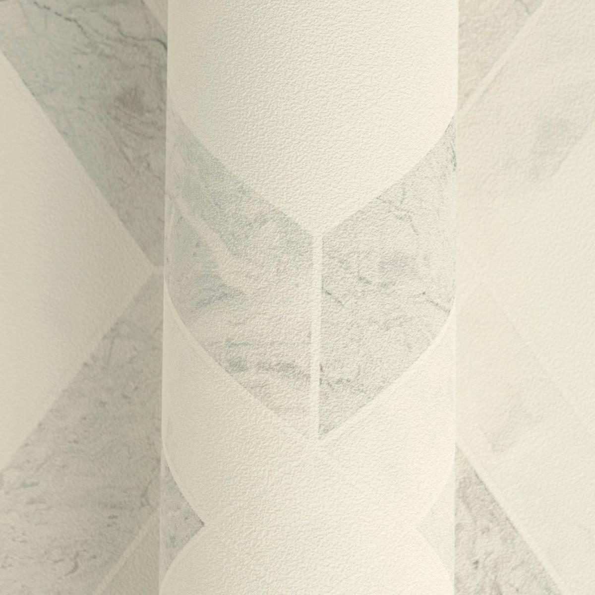 Crafted from high-quality non-woven material, this wallpaper is not only visually captivating but also durable and easy to apply. The vinyl surface with slight embossing brings depth and richness to the geometric design, while the glossy finish adds an elegant touch. The neutral color tones of white and grey make it versatile, seamlessly complementing various décor styles while maintaining an aura of sophistication.