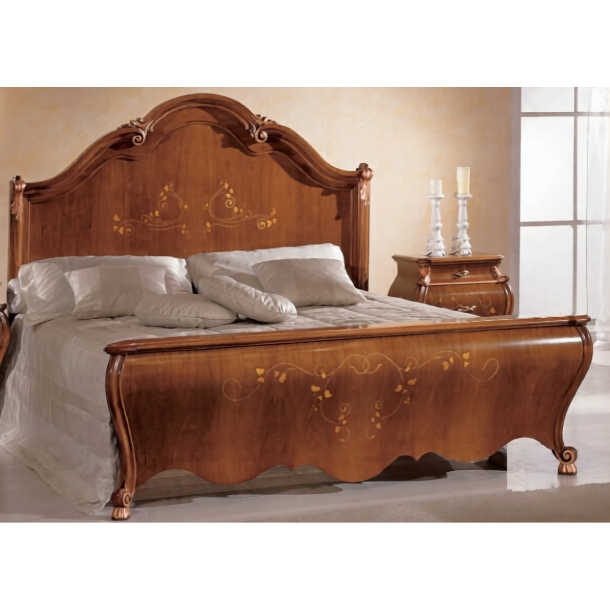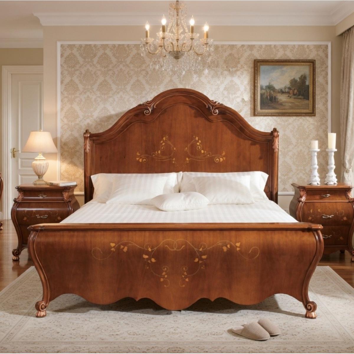 A bed of this natural material authority demands a surrounding bedroom environment of equal curatorial precision and complementary warmth. Our collection of luxury nightstands includes carved solid wood pieces in warm walnut and cherry finishes whose grain character, proportional scale, and ornamental detail are ideally suited to complement a baroque wooden bed of this natural elegance and material purity. A matching walnut finish nightstand with bombe drawer fronts and gold hardware would establish a bedroom ensemble of complete visual and material coherence — presenting a unified tableau of European luxury craftsmanship in which solid wood, natural warmth, and classical Baroque form are held in perfect, enduring equilibrium that deepens in beauty and resonance with the passage of time.