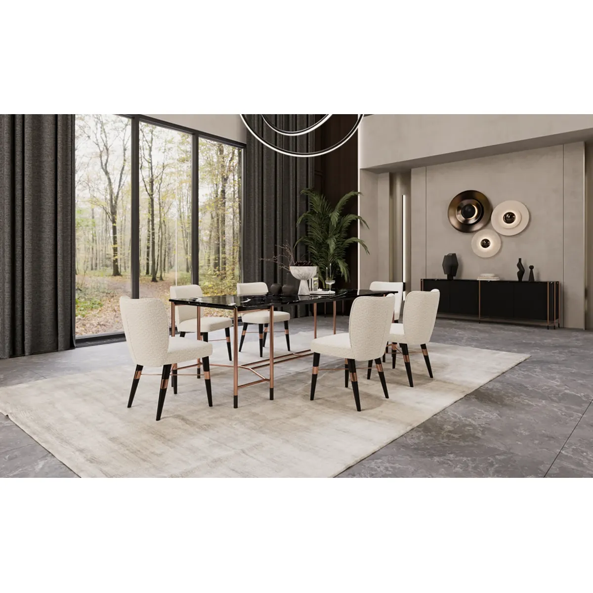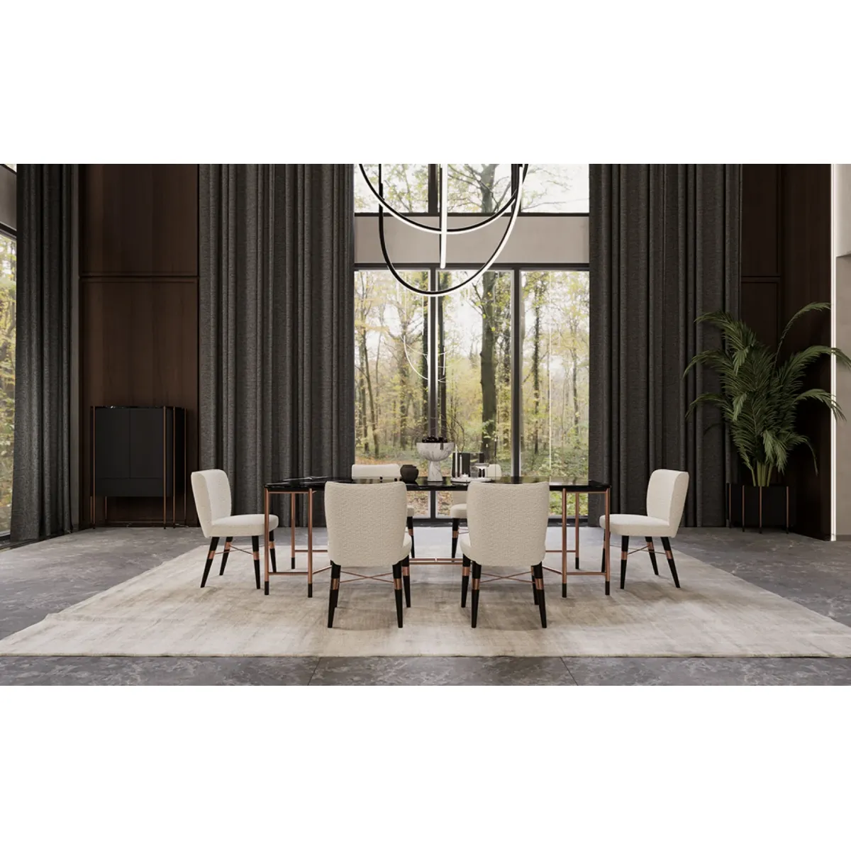 Perfectly suited for those who appreciate refined design and superior comfort, this dining chair will elevate any room with its chic, modern look. Complete your dining experience with the Black Marble Top Rectangular Luxury Dining Table with Copper Legs, perfectly complementing the elegance and style of this luxurious dining chair. Explore more exquisite designs in our luxury dining chair collection to elevate your dining space with sophistication and style.