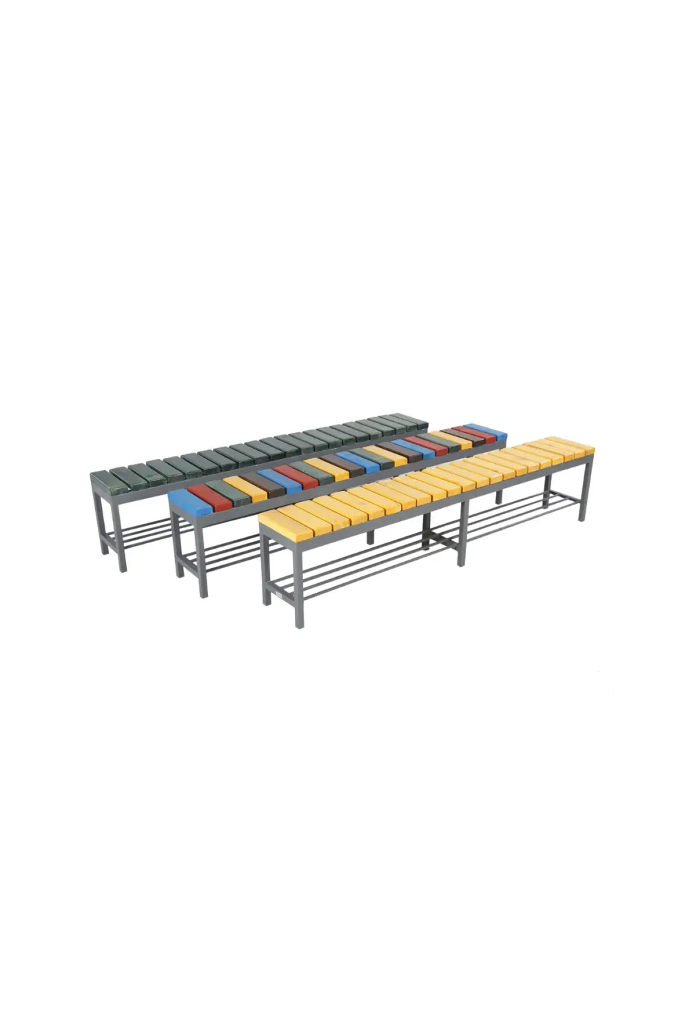 Crafted from Bulgarian spruce, tropical hardwood, or Canadian pine, each piece showcases refined grain patterns and natural durability. The robust galvanized frame ensures stability and long-term performance, making it ideal for both indoor and outdoor architectural environments.